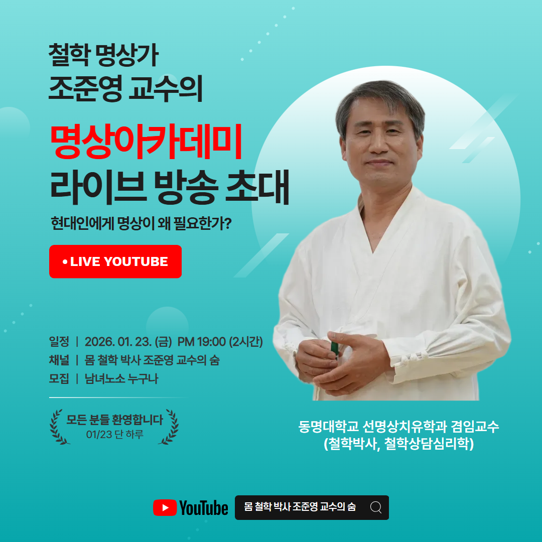 ¡á ¹æ¼Û ¾È³» ÀϽà : 2026³â 1¿ù 23ÀÏ(±Ý) Àú³á 7½Ã (2½Ã°£) ä³Î : À¯Æ©ºê ¡®¸ö öÇÐ ¹Ú»ç Á¶ÁØ¿µ ±³¼öÀÇ ¼û¡¯ ´ë»ó : ´©±¸³ª Âü¿© °¡´É ºñ¿ë : ¹«·á